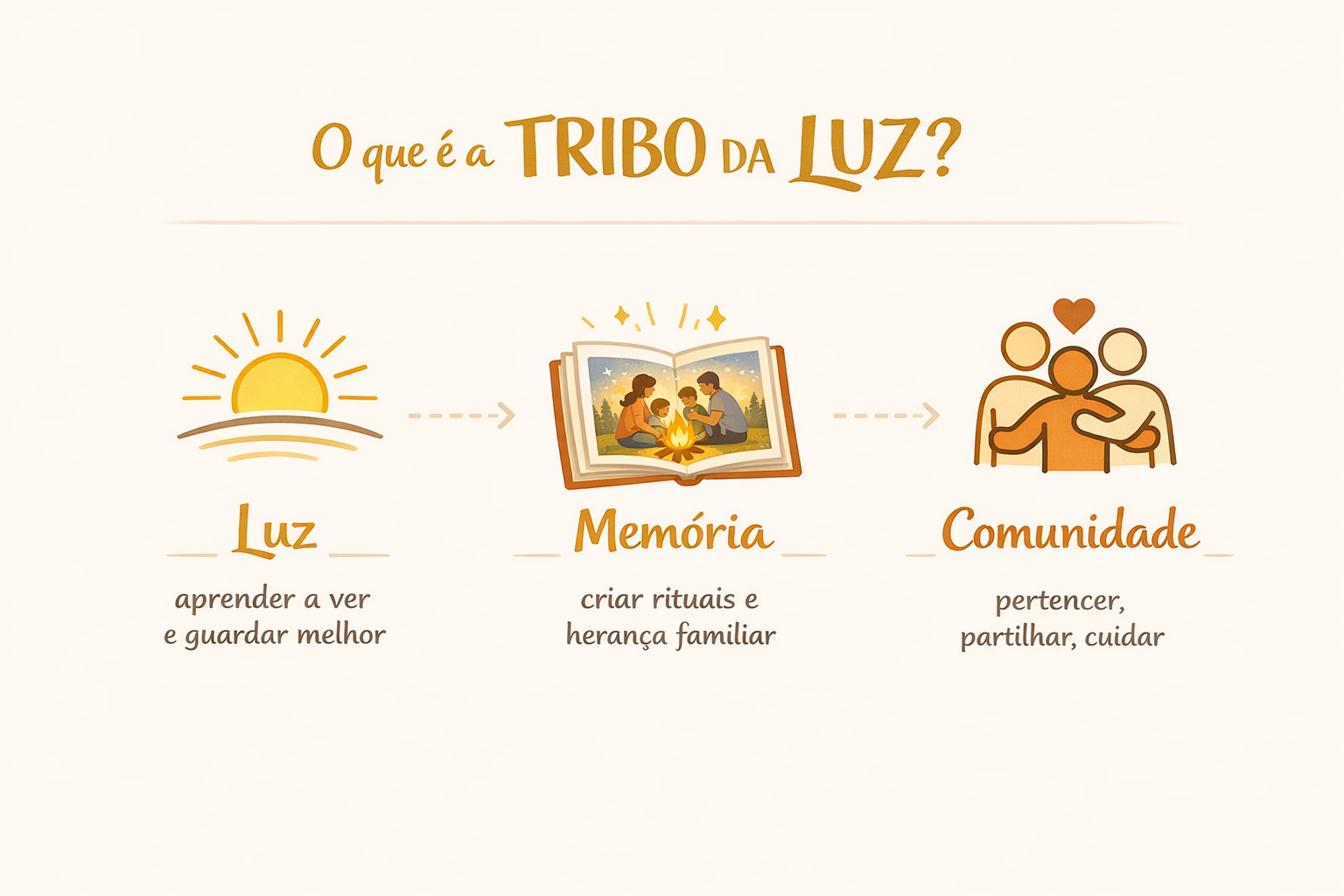 A Tribo da Luz está a nascer com intenção e sem pressa. No seu devido tempo anunciaremos toda a dimensão deste projeto, contudo ele foi pensado para crescer por fases, de forma sólida e consciente. Começamos com uma comunidade mais restrita, próxima e envolvida, e iremos alargando o seu âmbito à medida que ganha estrutura, rituais e vida própria.